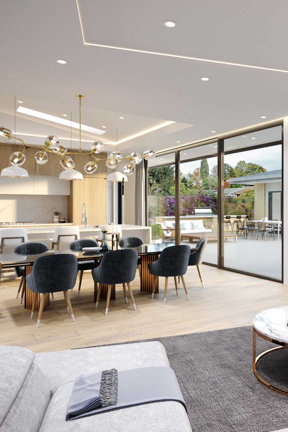 Centred around the generous west and south-facing backyard, the home’s bright and open living space is made to function for the everyday and as a hub for celebrations. Built for future accessibility and ongoing change, level transitions connect the ground floor to the well-planned outdoor space with a ground floor principal bedroom and additional principal room with direct outdoor access.
